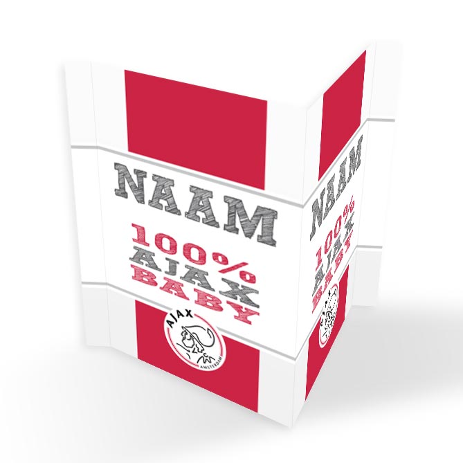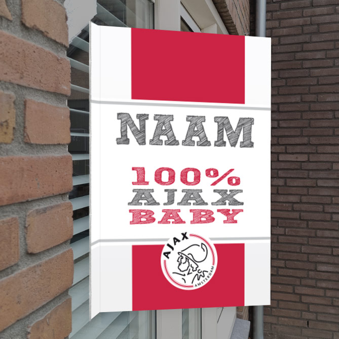 Ajax Fans opgelet... een geboorte raaambord van Ajax voortaan speciaal voor jullie in ons assortiment. Wil je graag de geboorte van jullie kind kenbaar maken, maar wel graag met een leuke Ajax Amsterdam twist erin verwerkt? Dan is een geboorte raambord van Ajax de juiste manier. Je bevestigd dit geboorte raambord gewoon tegen de raam. Je kunt de naam invullen, of leeg laten als je liever geen naam mee wilt laten printen. Dan kun je later er zelf met plakletters de naam op plakken.