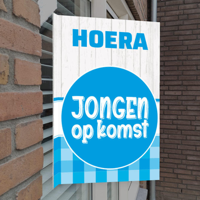 Leuk blauw geboorte raambord voor de geboorte van een jongetje. Zonder dat je de naam van het kind hoeft te weten. Gewoon : "hoera een jongen".
