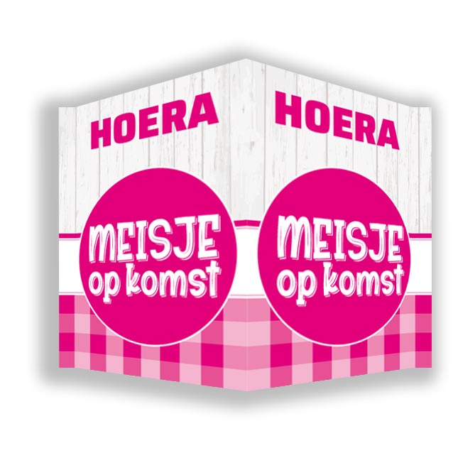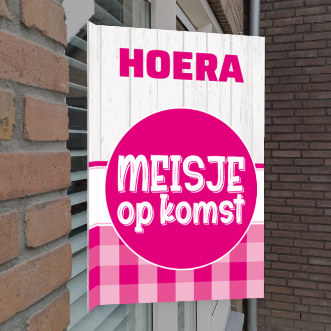 Hoera, een meisje op komst! Jullie zijn helemaal in blijde verwachting van een meisje, en willen dat graag van de daken schreeuwen? Dan is een geboorte raambord iets voor jullie. Dit geboorte raambord met de tekst HOERA, meisje op komst is natuurlijk perfect om iedereen alvast kenbaar te maken dat er een klein meisje zit aan te komen. Zo is jullie dochtertje er van verzekerd dat iedereen snel genoeg op de stoep zal staan als het zover is.